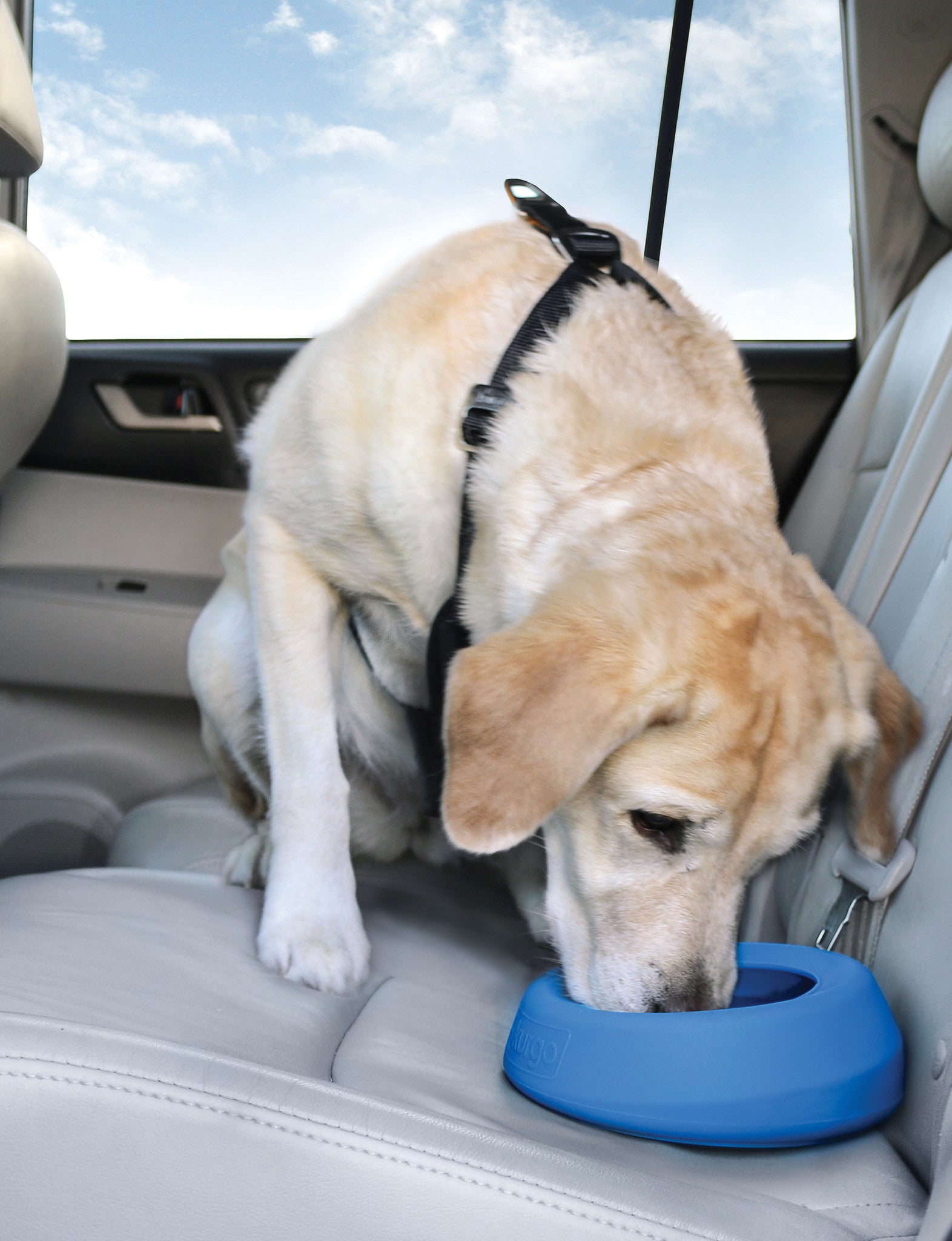 The Kurgo Splash Free Wander Dog Water Bowl is a portable travel bowl designed to prevent spills, making it suitable for car rides, crates, and camping.